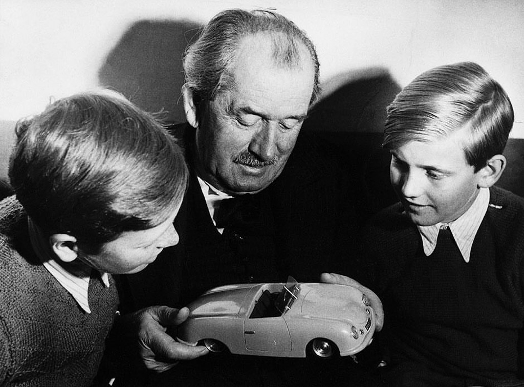 Ferdinand Porsche with his grandsons Ferdinand Piech and Ferdinand Alexander Porsche.